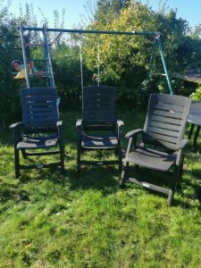Verschenke 3 Klappstühle aus Plaste. Auflage ist auch vorhanden.